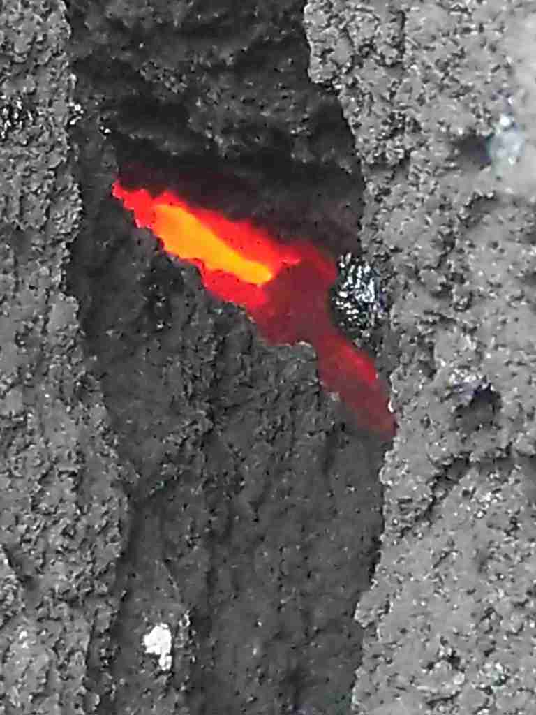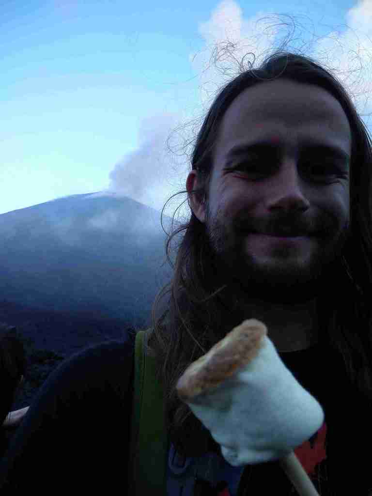 Wenn es heißer ist, wird auf der Lava sogar Pizza gebacken. Wir mussten und mit Marshmallows und Würstchen begnügen. Heiß genug, um meine Schuhe anzuschmelzen, war es aber dennoch. Der linke Schuh hat jetzt nur noch eine halbe Sohle, praktisch ohne Profil…