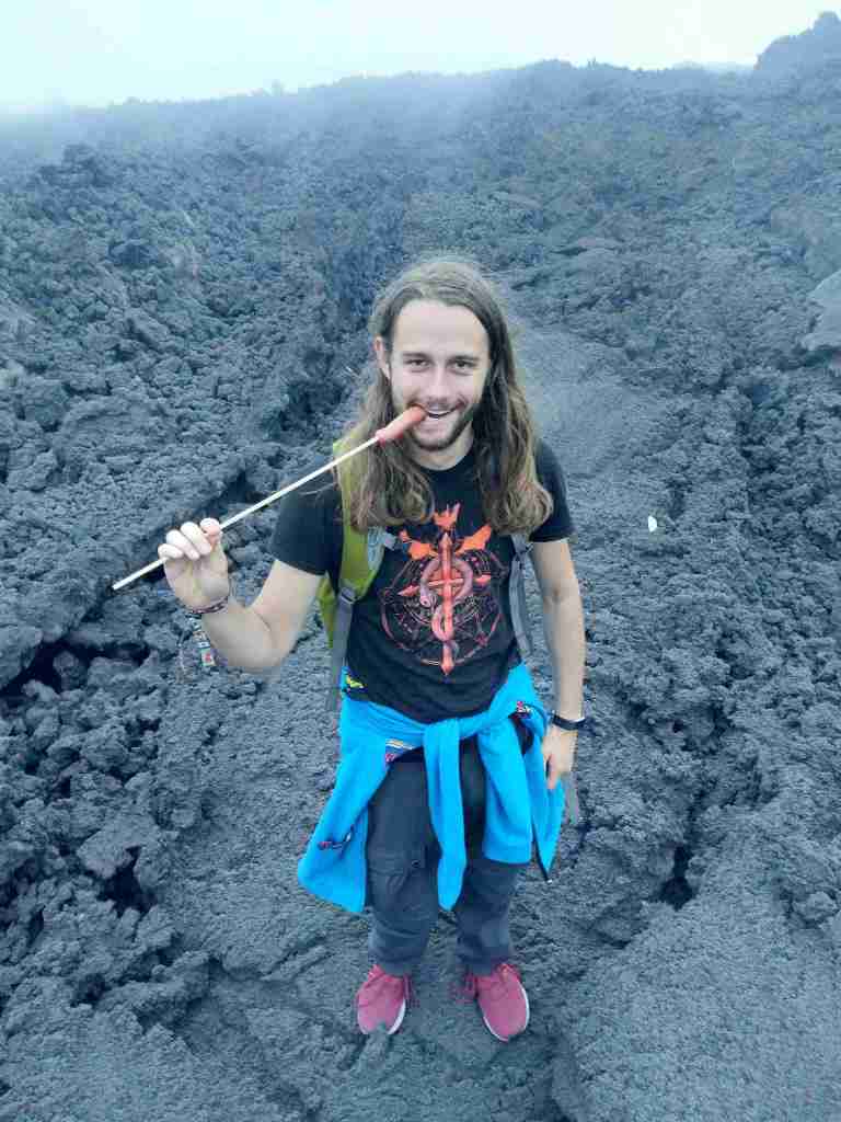 Am letzten Donnerstag habe ich den Vulkan Pacaya bestiegen. Dieser ist einer der aktivsten Vulkane in Zentralamerika. Die Lava fließt praktisch direkt unter einem durch. Bei meinem Besuch lag der letzte Ausbruch schon mehrere Tage zurück, sodass die Menge der Lava überschaubar war.