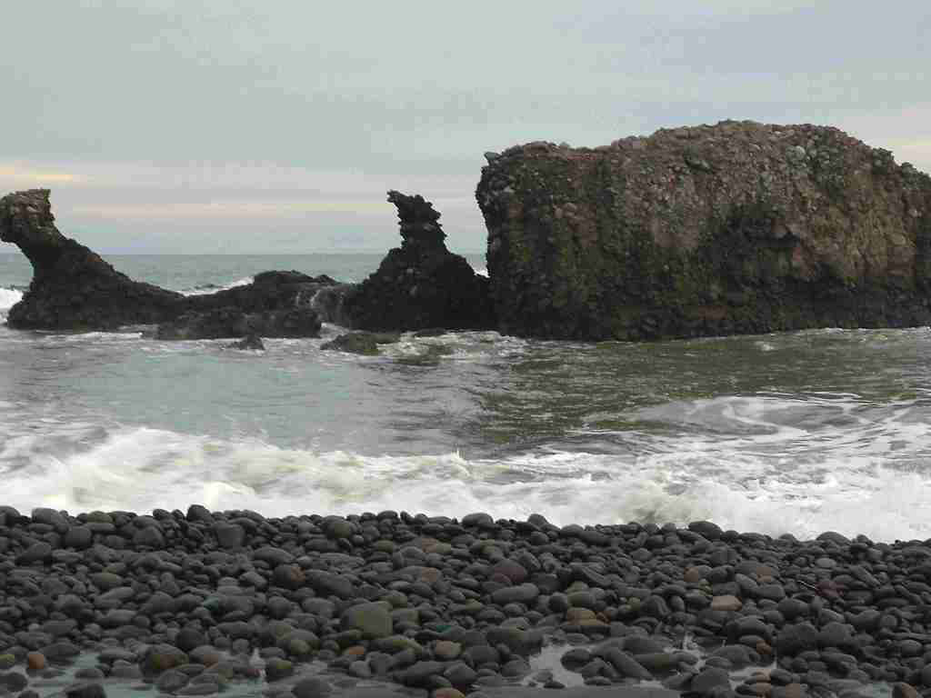 Die See ist hier recht rau und wird in den meisten Fällen eher zum Surfen verwendet. Auch gibt es hier ziemlich viele Steine, sowohl am Strand als auch im Wasser. Und die stärkeren Wellen können dir schon mal einen faustgroßen Stein gegen den Fuß hauen. Außer ein paar Schürfwunden ist aber nichts passiert.