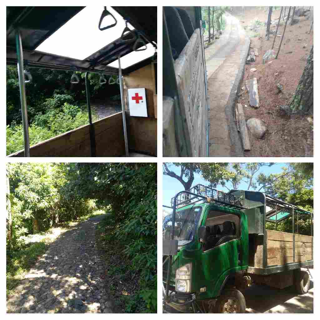 Und man muss noch nicht einmal dafür laufen, denn ein Truck bringt einen die 1200 Höhenmeter bis zur Spitze. Die Fahrt dauert eine Stunde und ist ziemlich holprig, so dass einem schlecht wird, und man muss aufpassen, dass man keine Äste ins Gesicht bekommt.