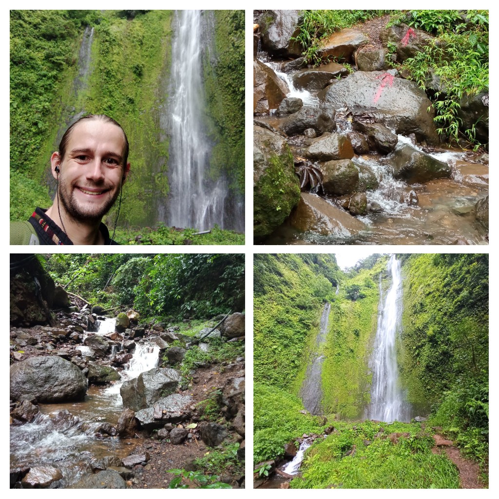 Am gleichen Vulkan liegt der Wasserfall der Insel, den ich zwei Tage später besuchte, nachdem sich meine Füße ein wenig erholt hatten. Ich hatte nicht viel erwartet, aber nach einer ca. einstündigen Wanderung, die unter anderem teilweise durch den Fluss führte, stand ich vor einer ziemlich hohen Wasserwand. Mehr als 50 Meter fällt das Wasser dort in die Tiefe.