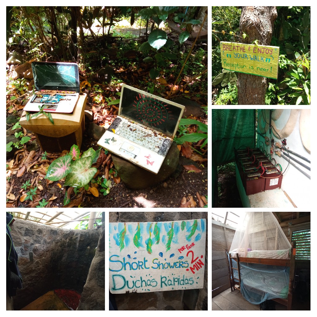 Schlafen war aufgrund der Lautstärke dementsprechend aber auch nicht. Und im Allgemeinen hat es in meinem Zimmer und Bett so gemüffelt, dass ich alle drei Nächte in der Hängematte auf der Terrasse vor der Tür verbracht habe. Dafür wurde man morgens von Vögeln und Affen geweckt, da das Hostel mitten im Dschungel liegt, zehn Minuten Aufstieg von der Straße entfernt. Mit Plumpsklo und Freiluffdusche.