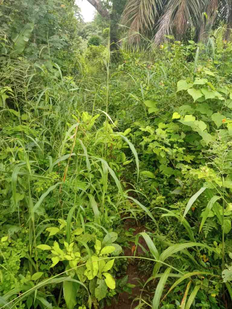 Dann wurde es allerdings etwas undurchsichtig. Teilweise wurde der Weg so dicht, dass ich dachte, er könne seit Wochen nicht mehr gelaufen worden sein. Er war aber erkennbar und so schob ich mich durch das immerfeuchte Gestrüpp. An manchen Kreuzungen schaute ich auf die Karte, um mich für die Richtung zu entscheiden. Nur einmal musste ich ein paar Meter zurück gehen, da meine Entscheidung offenbar nicht richtig war.