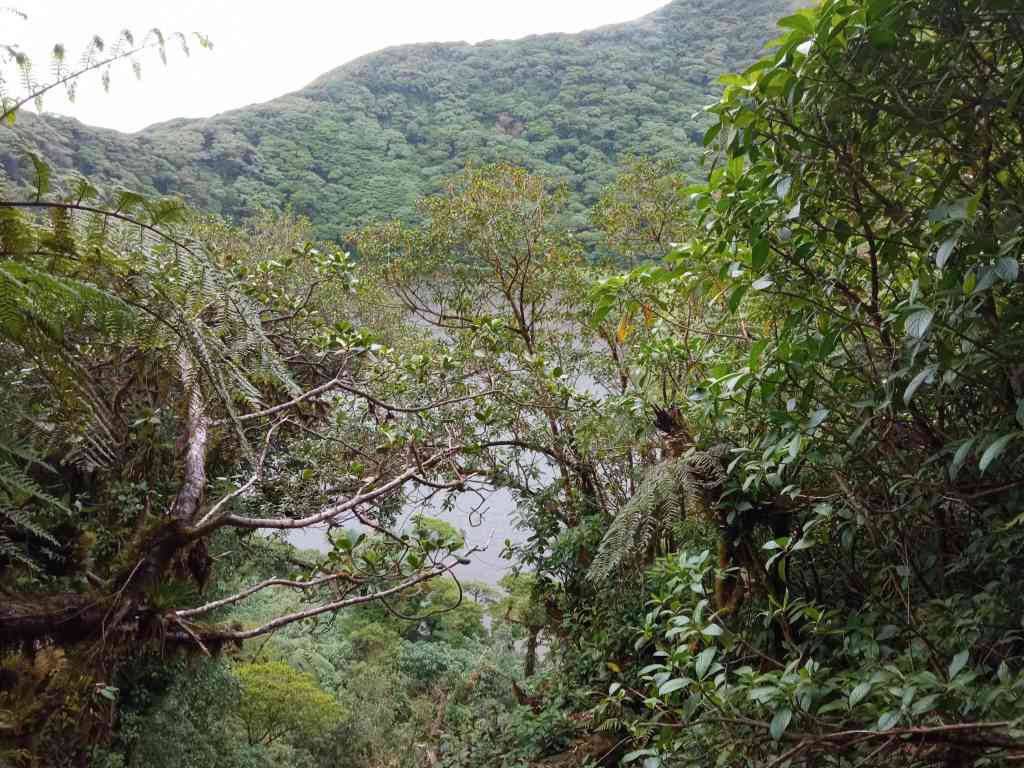 Der Weg wurde wurde allerdings immer schwieriger. Ich musste teilweise knöcheltief durch Schlamm waten, mich unter liegenden Baumstämmen auf ca. einem Meter Höhe durchschieben (Ich war gebückt und fast auf den Knien). Der Weg führte auch immer mal wieder nach unten, wodurch deutlich mehr Höhenmeter entstanden, die ich nicht einkalkuliert hatte. Allein der Abstieg zur Lagune dauerte 20 Minuten. Nach 3 Stunden und 50 Minuten war ich allerdings dort.