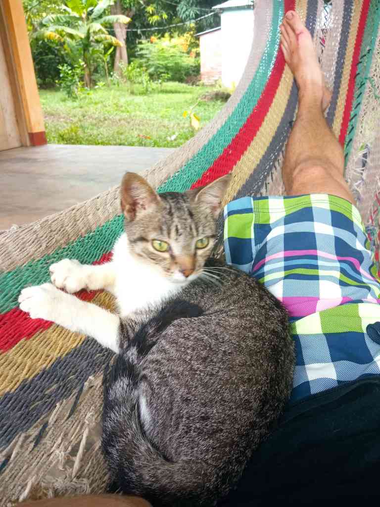Die Familie, die den Hof und Felder bewirtschaftete, war sehr freundlich und hat mich liebevoll aufgenommen. Und als ich in der Hängematte lag, wurde ich auch von einer Katze besucht.