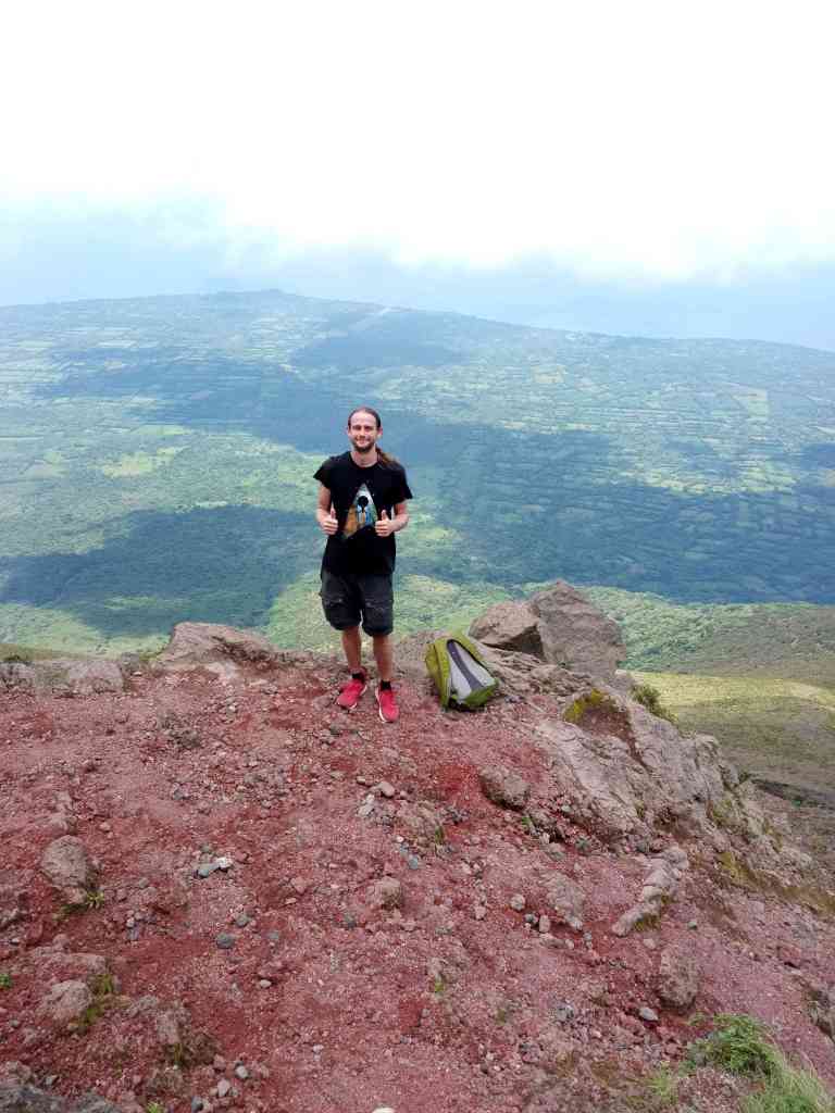 Dies ist der südliche Vulkan der Insel. Er ist etwas kleiner als der andere und hat eine Lagune in seinem Zentrum. Ich bin ein bisschen spät losgelaufen, sodass man mich nicht mehr durch den Kontrollpunkt lassen wollte (nicht nach 7) und man mir außerdem sagte, ich brauche einen Guide, weil zu viele Personen dort verloren gegangen seien. Ich bin dann also eine halbe Stunde in Richtung Hostel zurückgelaufen und habe dort einen anderen auf der Karte angezeigten Weg nach oben genommen. Es war bereits 10:30 Uhr. Ich wäre eine Stunde eher gewesen, hätte ich nicht zuerst den anderen Weg versucht.