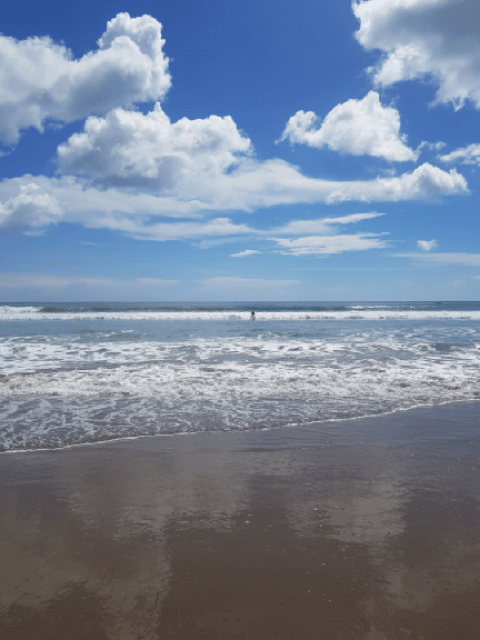 Fünf Tage verbrachte ich dort, wo es gefühlt nichts gab und ließ mir von ein paar Freunden nochmal das Surfen zeigen. Ca. in der Mitte zwischen Ebbe und Flut hatte das Wasser eine Tiefe, bei der ich noch stehen konnte, was mir den Weg ins Wasser und durch die Wellen erleichterte, aber tief genug, um beim Surfen nicht auf Grund zu laufen von der Welle direkt auf den Boden gedrückt zu werden. Und so gelang es mir tatsächlich, ein paar Mal aufzustehen.