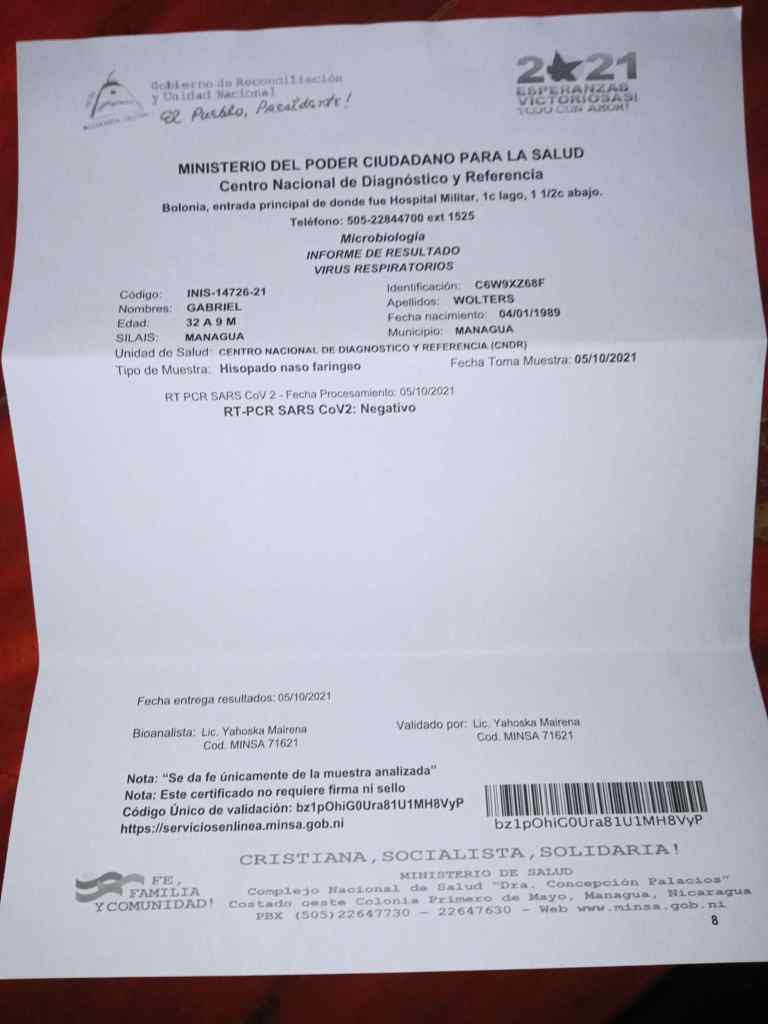 Am kommenden Tag wurde dann das Einreiseformular für Honduras online ausgefüllt und danach der Covid-Test gemacht. Für Honduras hätte ein Antigentest gereicht, aber den gibt’s in Nicaragua nicht. Also ein PCR für satte 150 Dollar, den es in zwei Laboratorien gibt. Dementsprechend überfüllt war der Ort. Datenzettel ausfüllen, Kassenschlange, Warten zum Testaufruf. Zwei Stunden habe ich dort zugebracht, wo jeden Vormittag ca. 400 Tests durchgeführt werden.