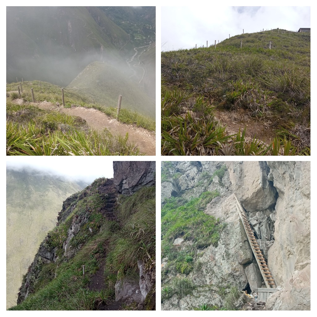 Als es anfing zu regnen, kehrten wir den steilen Weg zur Hütte zurück. Es hätte auch einen Weg nach unten zur Bahnstation gegeben, aber der sollte wohl sehr gefährlich sein und da der Zug sowieso nicht fuhr, entschied ich mich, später den gleichen Weg zurückzukehren. Dadurch verpasste ich dann den Blick auf die Teufelsnase. Der Cóndor-Aussichtspunkt befindet sich nämlich genau auf dieser.