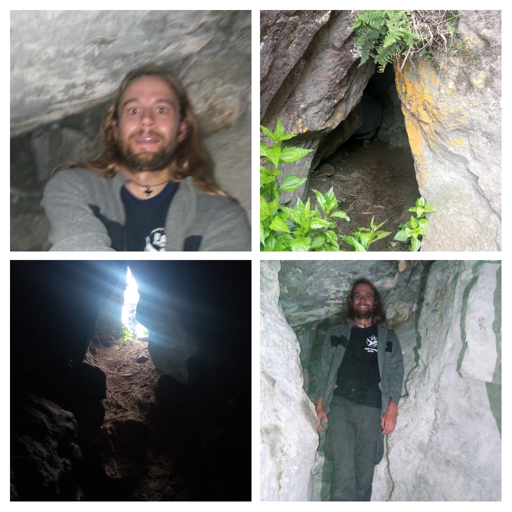 Ich erkundete die schmale Höhle, die rund 50 Meter in den Berg hineinführte, mit dem Licht meines Telefons, bevor wir alle vor der Höhle rasteten und die Aussicht genossen.
