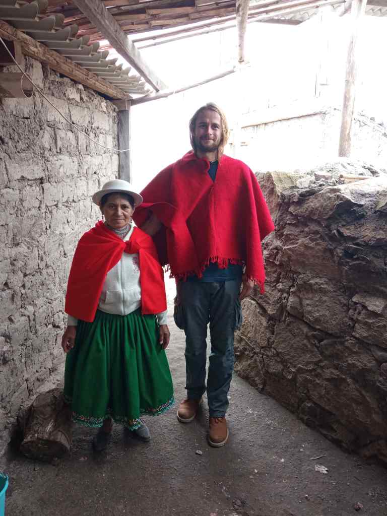 Danach wurde Holzofen für das Mittagessen angeheizt, bevor eine kleine Gruppe mit mir zu einer zu einer Höhle aufbrach. In Serpentinen ging es knapp ein Viertel des Berges hinunter. Der Weg war schmal und teilweise waren Teile abgerutscht, sodass man große Schritte machen musste. Am Ende gab es eine Leiter, die zu der Felsspalte im Berg führte, in der vor vielen Jahren wohl mal Kondore gelebt haben. Inzwischen gibt es im Norden Südamerikas kaum noch welche und auch im Süden werden es weniger, weshalb der Andenkondor mit schätzungsweise weniger als 10.000 Tieren auf der Vorwarnliste der Gefährdung steht.