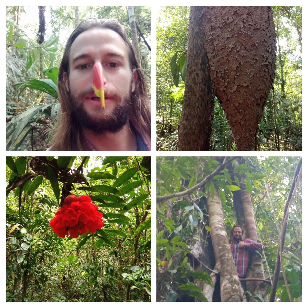 Nach dem Frühstück geht es in den Wald, wo wir außer ein paar interessanten Pflanzen wie Wanderpalmen, die sich bis zu 40 cm im Jahr bewegen, und ein paar Tapirspuren nichts Interessantes entdecken. Unser Guide Carlos lässt sich allerdings von einer Bullenameise in den Arm beißen. Der Schmerz dauert wohl bis zu 24 Stunden an. Daher wollen wir es lieber nicht probieren. Er macht dies wohl aber alle paar Tage und meint, das Gift Stärke sein Immunsystem und er sei seit vielen Jahren nicht mehr krank gewesen. Nach dem Mittag lege ich mich einen Moment hin und schlafe direkt ein. Hitze und Tour haben ordentlich müde gemacht.