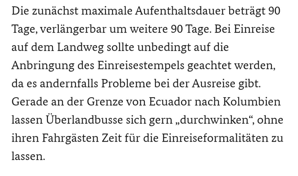 Die Ausreise aus Ecuador läuft problemlos. Ich begebe mich wieder auf die Kolumbianische Seite, diesmal ohne das meine Impfung kontrolliert wird. Das sind wohl eher Stichproben. Ich fülle erneut das Online-Einreiseformular aus für den neuen Tag und behaupte ich käme aktuell aus Otavalo. Die Passkontrolle dauert etwas länger, weil es fünf Versuche benötigt, bis mein Pass gelesen werden kann. Bei der Ausreise wurde auch schon alles manuell eingetippt. Keine Ahnung, wo ich den Pass zerstört habe… Letztendlich bekomme ich aber einen Stempel und bin nun legal im Land.