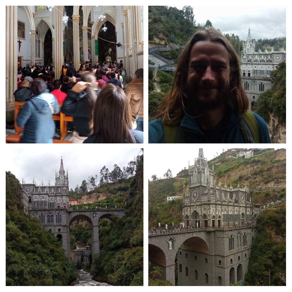 Nachdem ich mir am Morgen nach dem Grenzübertritt einen offiziellen Stempel besorgt habe, besuche ich Las Lajas mit seiner beeintruckenden Kathedrale, die am Rande des Flusses Guáitara oder eher darüber befindet.