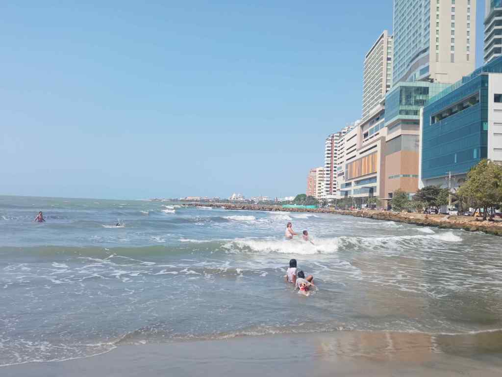 Am nächsten Tag geht es weiter Cartagena. Die Strecke bis Barranquilla ist ganz hübsch, da sie größtenteils am Meer entlang geht und teilweise zu beiden Seiten der Straße Meereslagunen liegen. Der Bus braucht allerdings eine Ewigkeit, da er in jedem größeren Ort unverhältnismäßig lange hält.